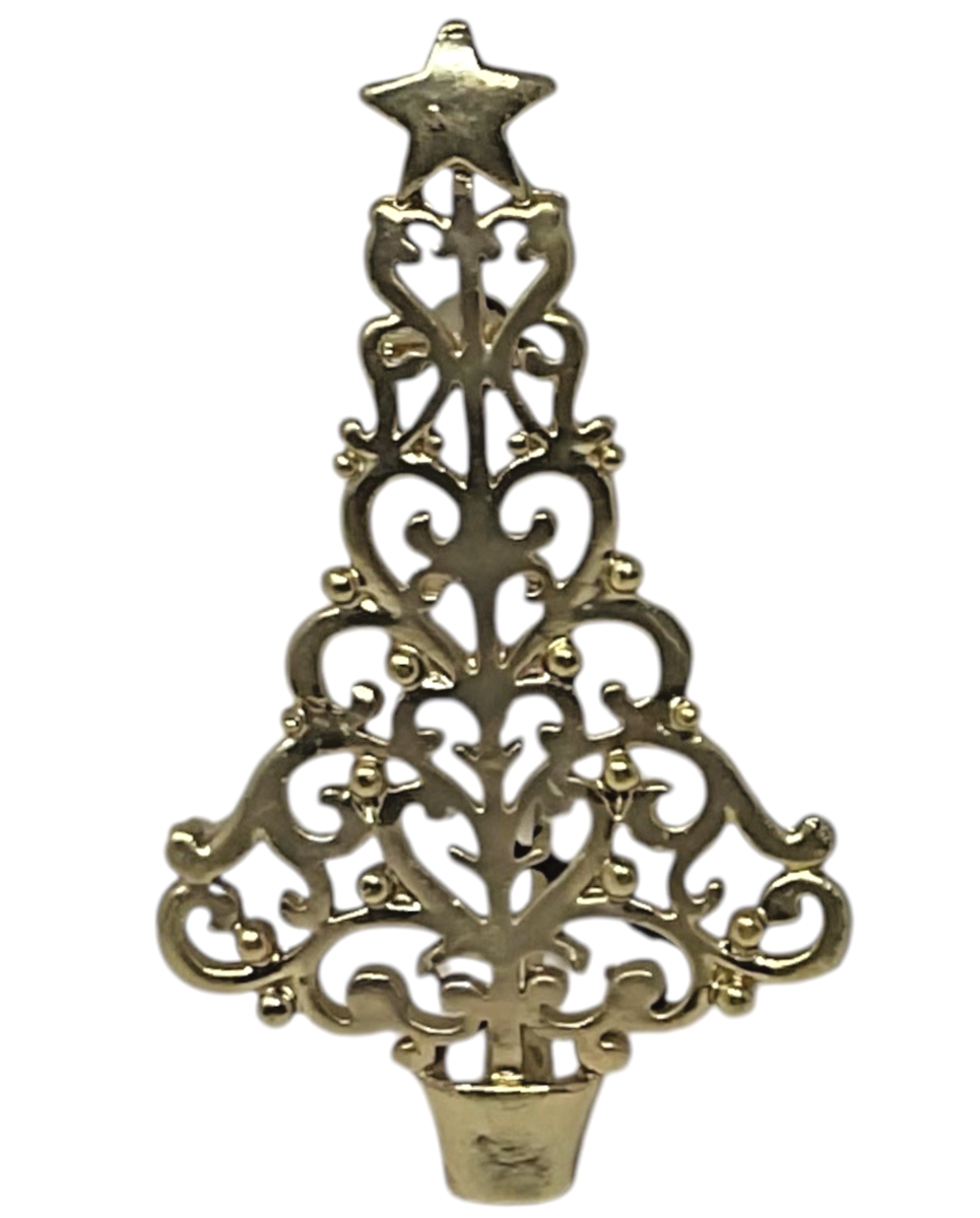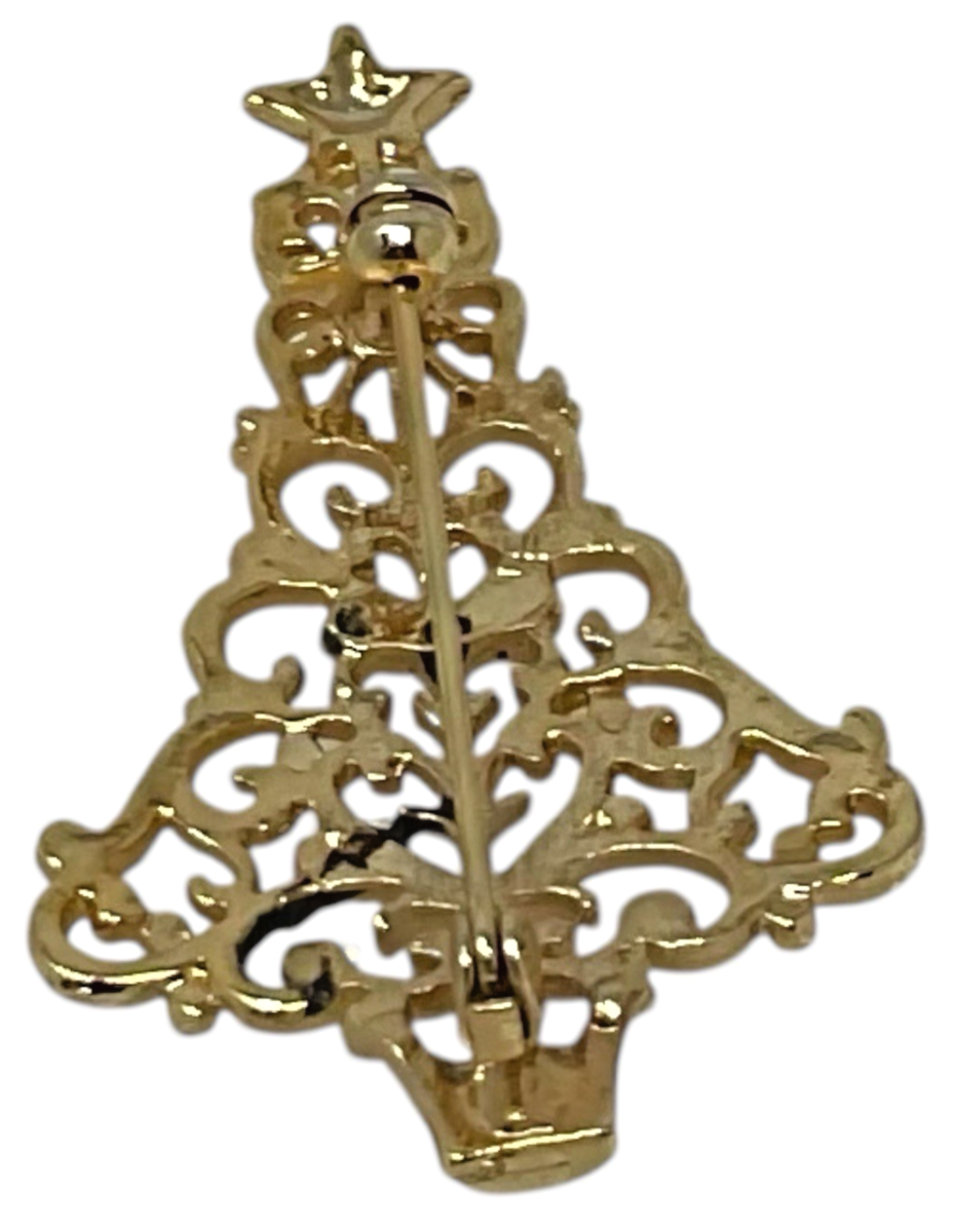- Vintage Gold Tone Christmas Tree Brooch – Filigree Holiday Pin Retro - 2.2" Tall