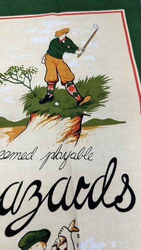 - Vintage Golfing Hazards Golf Tea Towel Made In Britain 843284