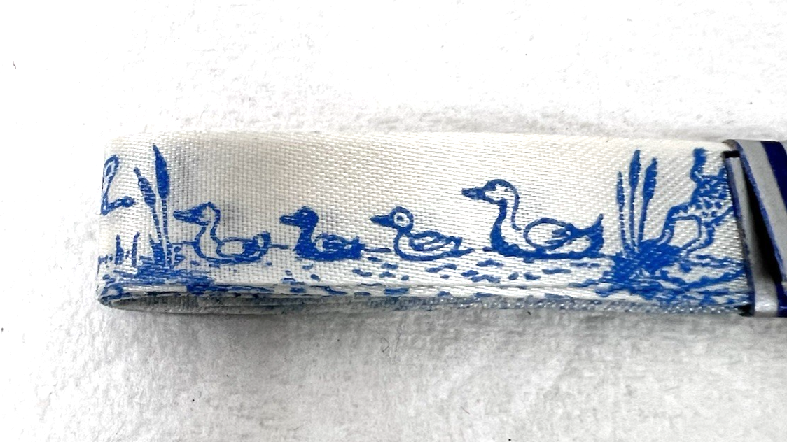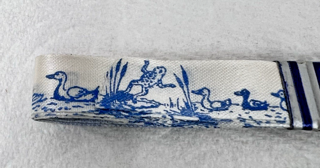Vintage H Carlin Gift Wrap Ribbon Printed w Ducks Frogs In Water MIP 7 Feet Just over 1/2 inch wide Never used however the blue is actually light blue in person the flash makes it darker than it really is