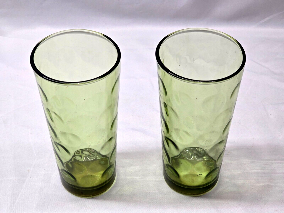 - Vintage HAZEL-ATLAS 6.25" Iced Tea Glass Cooler ELDORADO AVOCADO - Pair Of 2