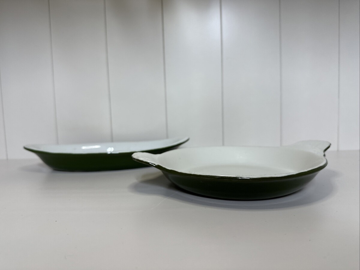 Primary image for Vintage Hall 435 & 522 Olive Green  Baking Dishes Small Made in USA Set of 2