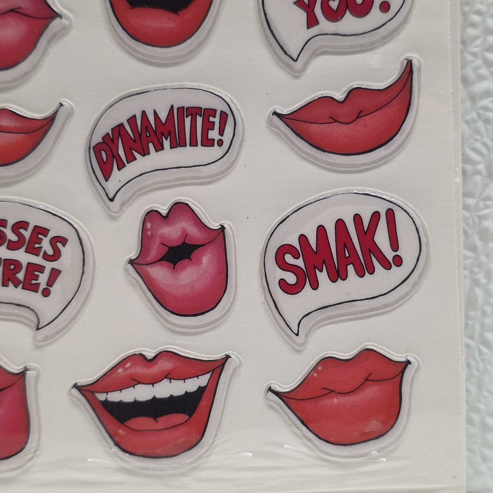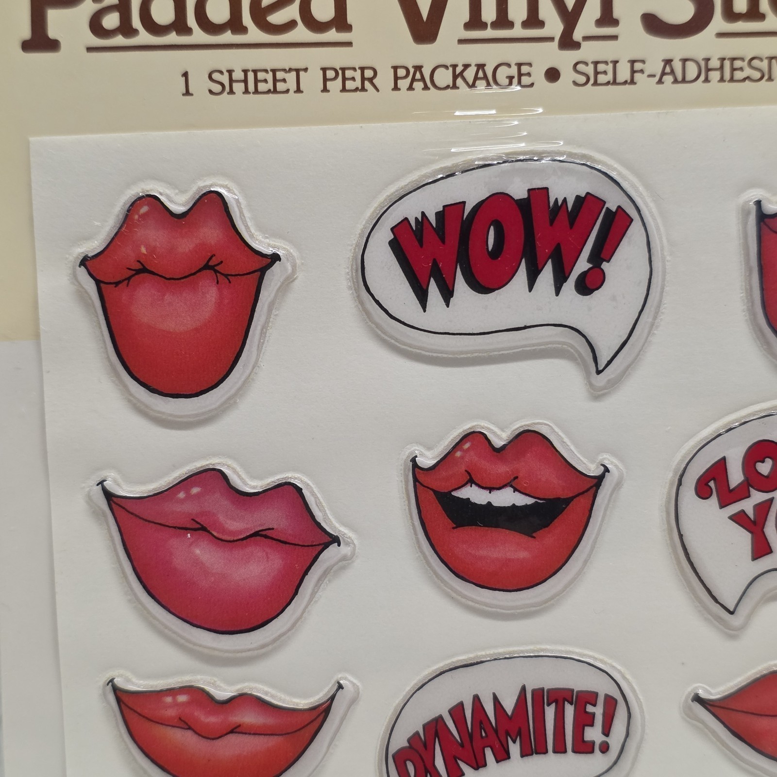 - Vintage Hallmark Padded Vinyl Stickers Kisses Lips Love
