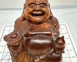 - Vintage Hand Carved Teak Laughing Buddha 6.75” Tall