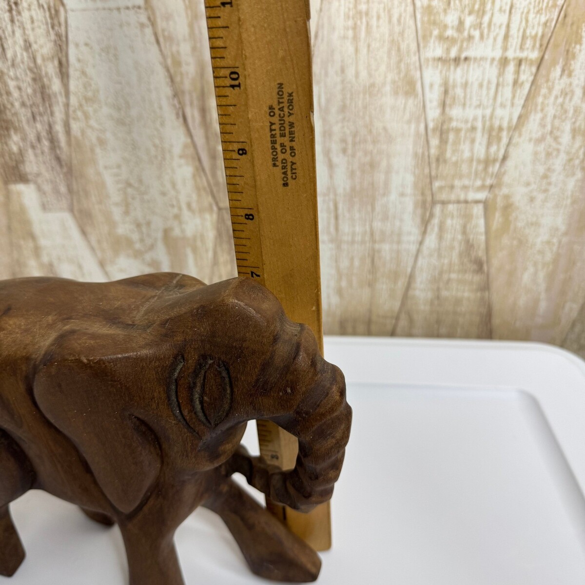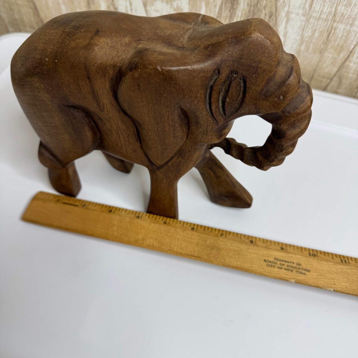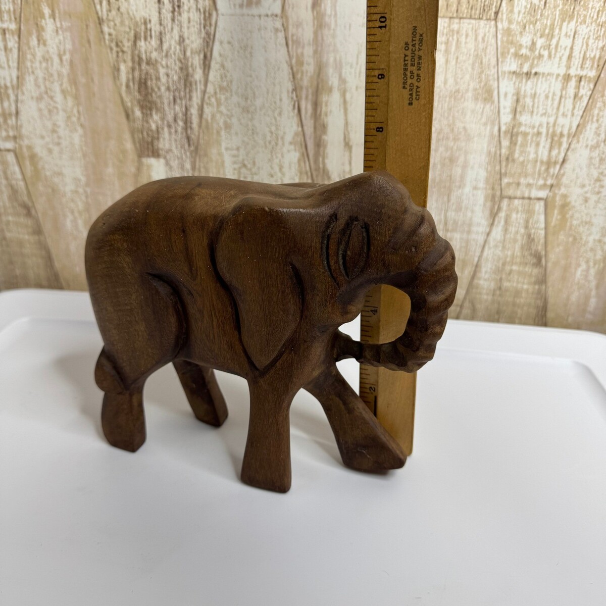 Vintage Hand Carved Wooden Elephant Figurine Statue Decor Brown