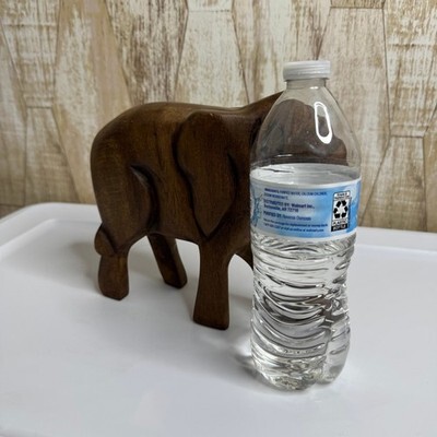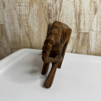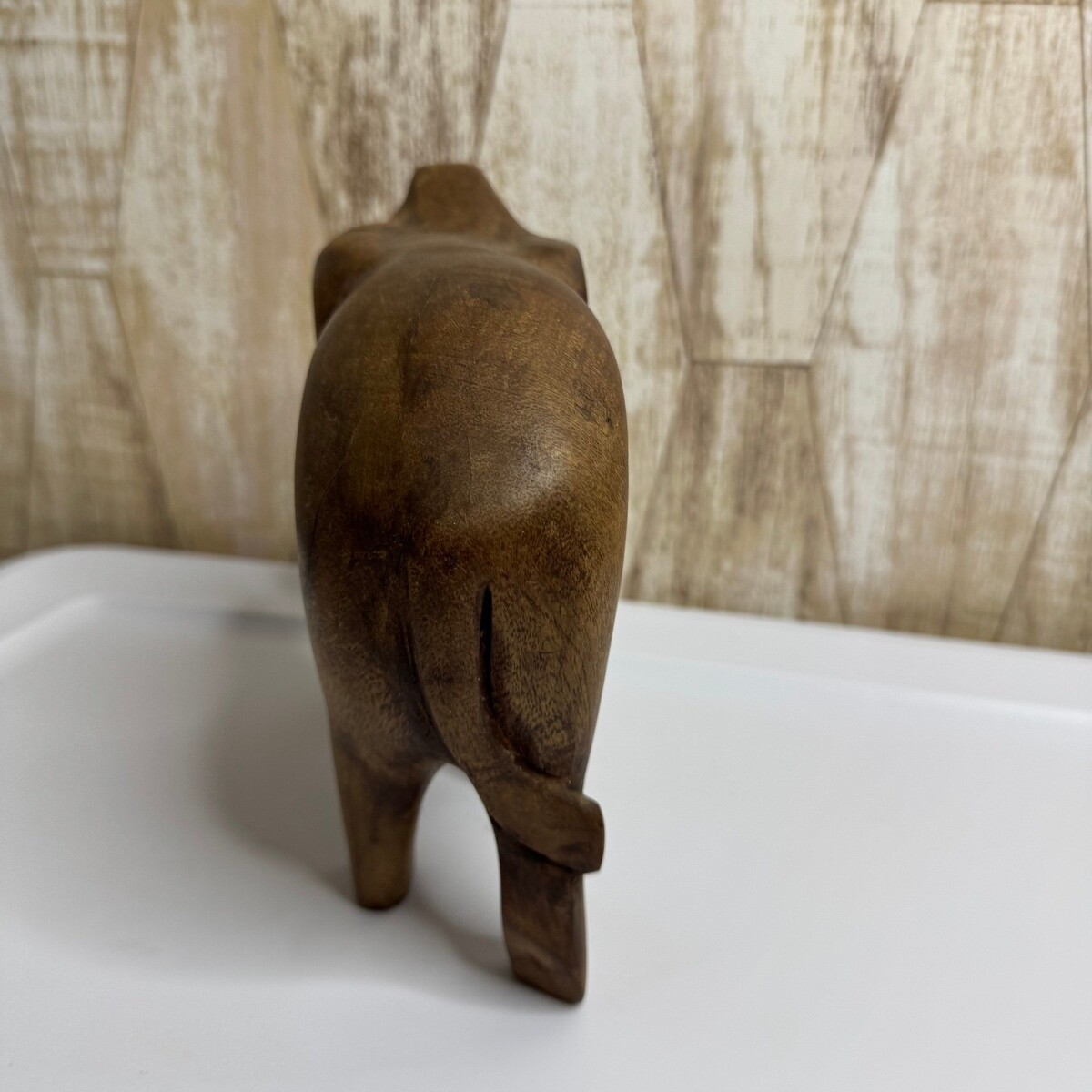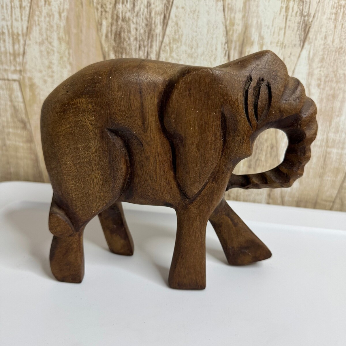 Vintage Hand Carved Wooden Elephant Figurine Statue Decor Brown