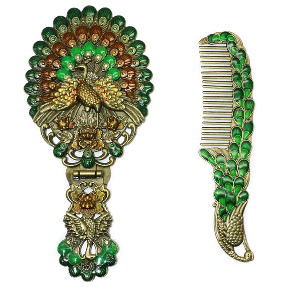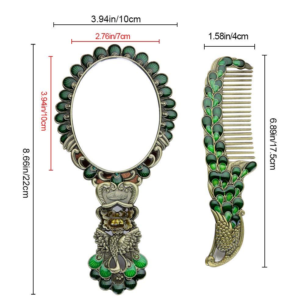 Vintage Hand Mirror Metal Embossed Peacock Handheld Face Makeup Beauty with Comb