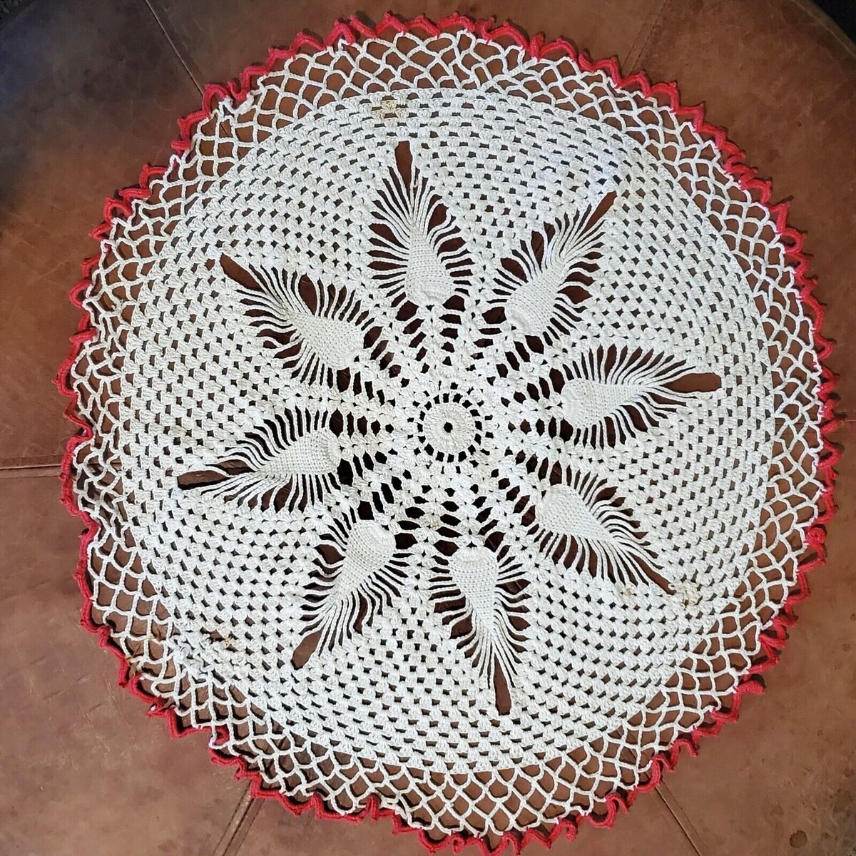 Vintage Handmade Acorn Doily White w/ Pink Edging Crochet 22 Inch