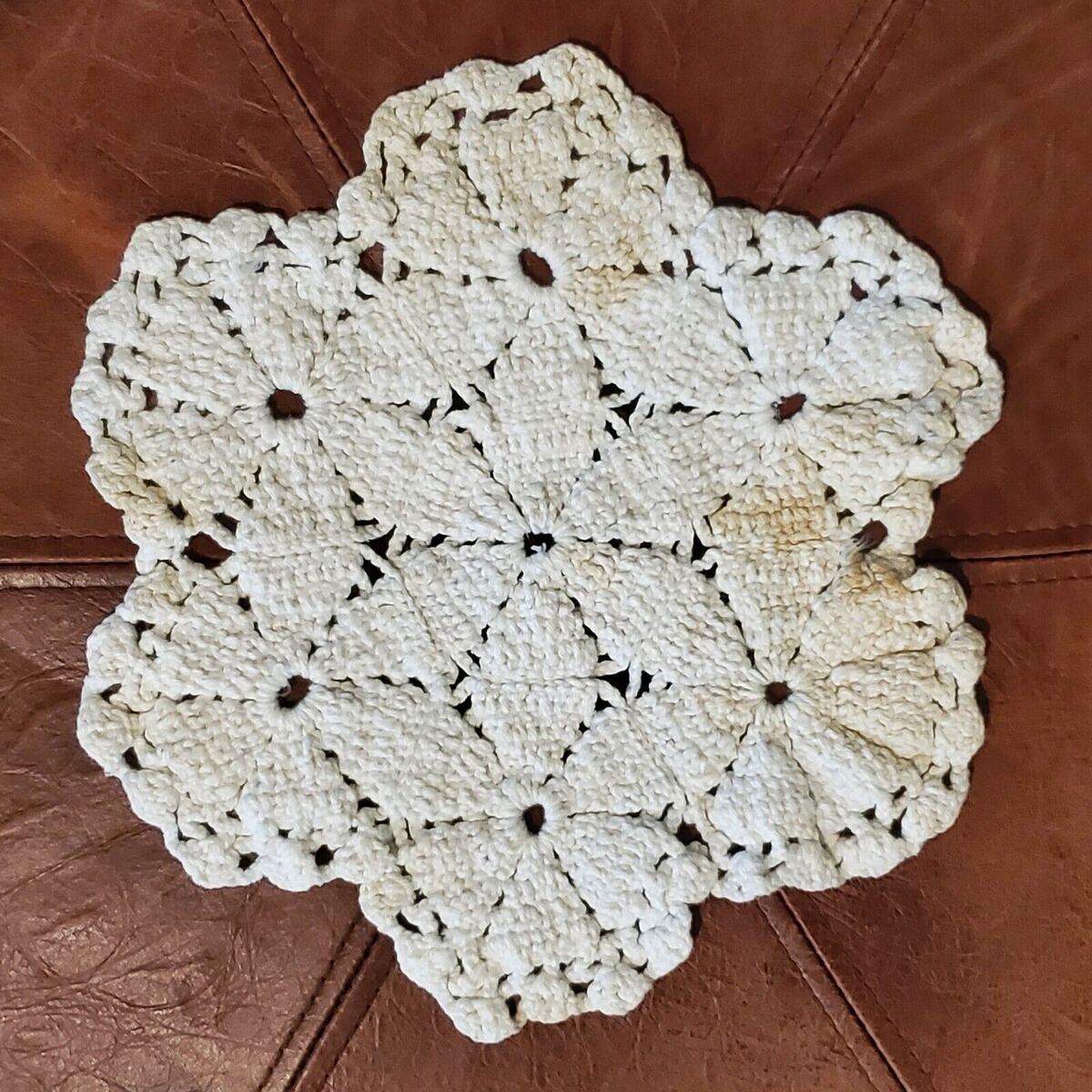 - Vintage Handmade Doily 9 Inch White Round Crochet