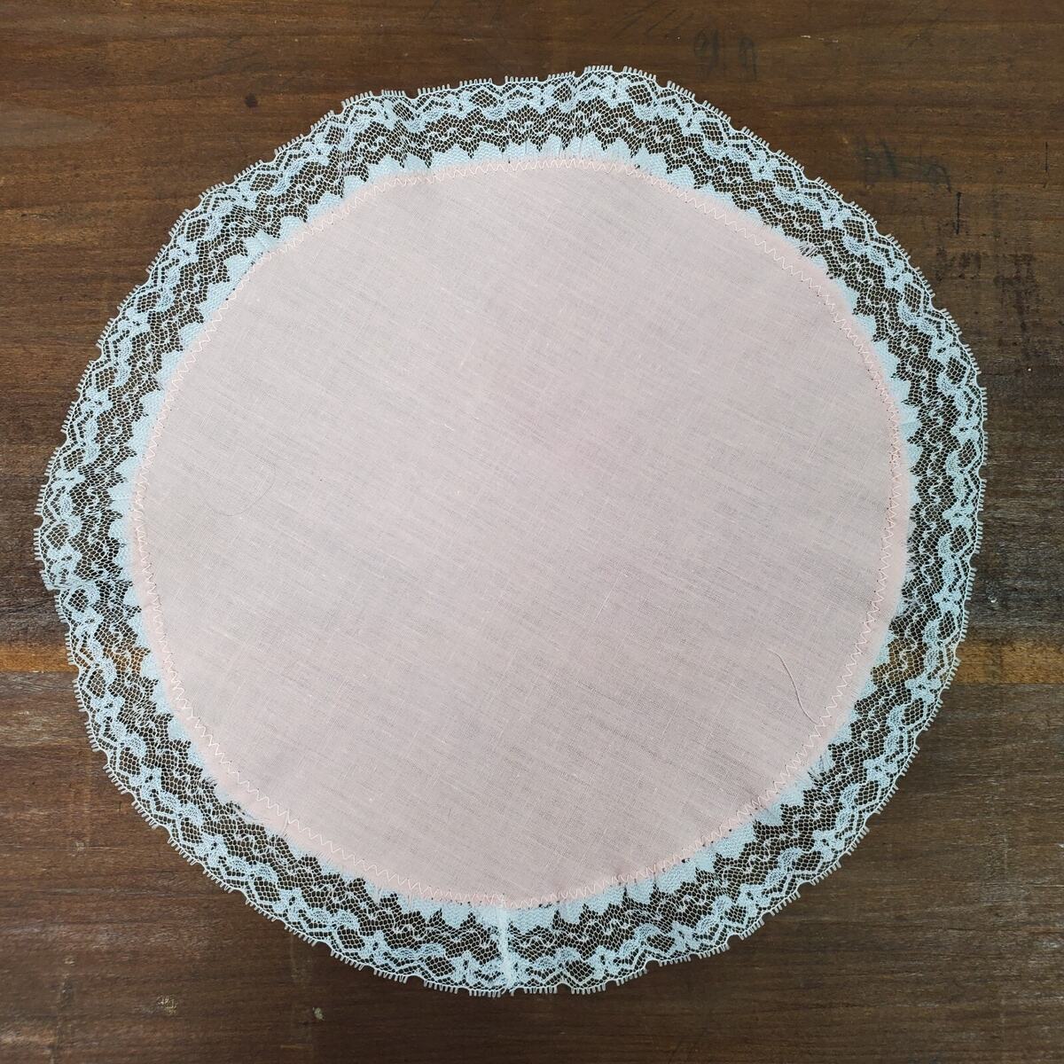 - Vintage Handmade Dresser Doily 12 Inch Round Pink White