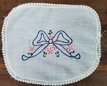 Vintage Handmade Embroidery Doily Blue Ribbon 8x7 Inch