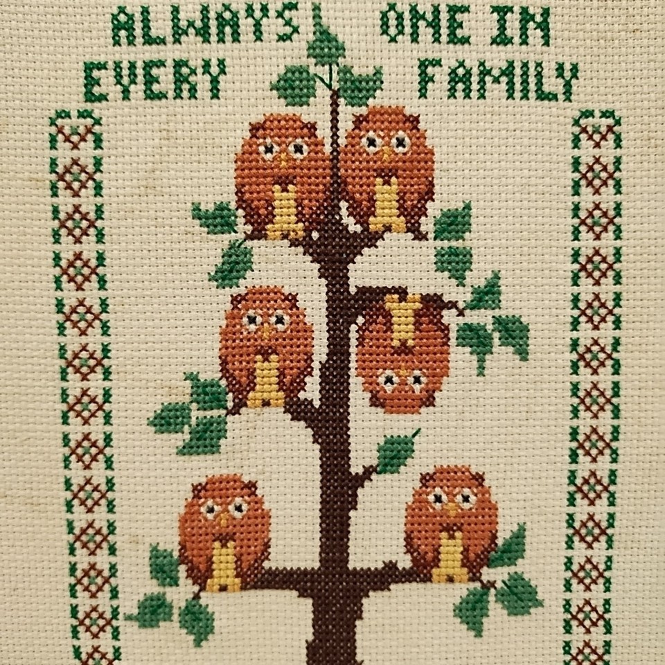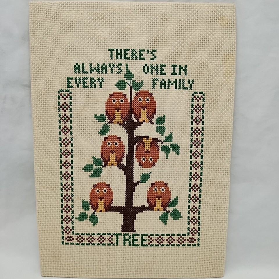 - Vintage Handsown Needlecraft "There's Always One In Every Family" Owls In A Tree