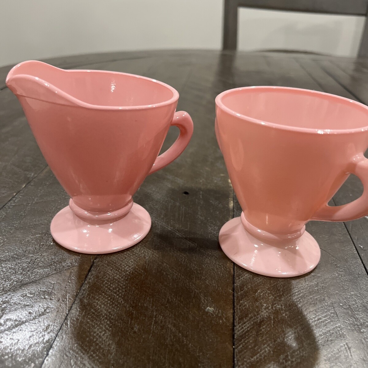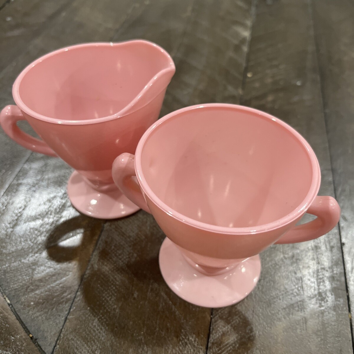 Vintage HAZEL ATLAS Moderntone Ovide SUGAR & CREAMER Pink Platonite