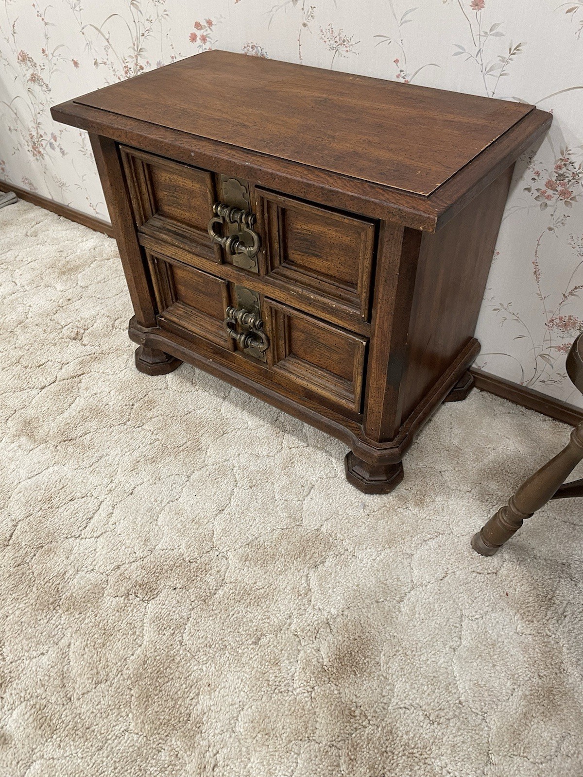 - Vintage Heavy Wood 2 Drawer Nightstand Or End Table By Stanley Furniture
