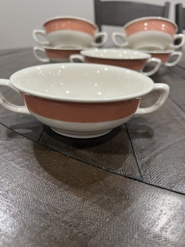 - Vintage Homer Laughlin Best China Double Handle Soup Bowl Ivory Pink Set Of 6