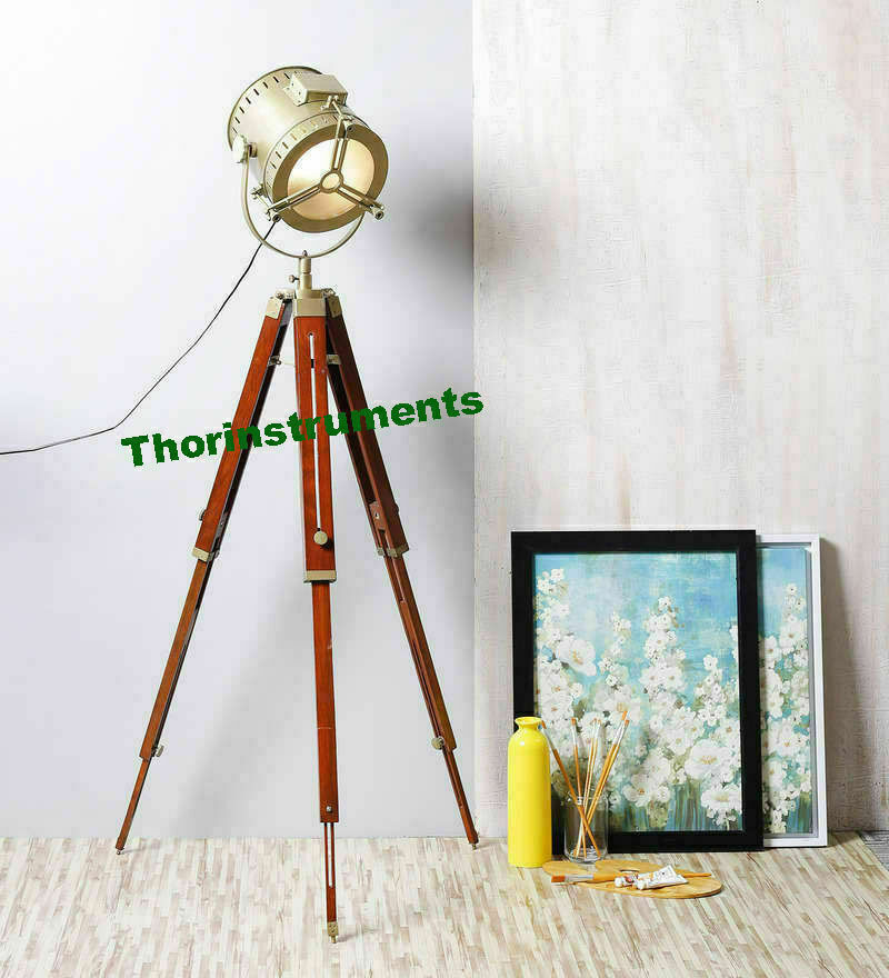- vintage Huge industrial DESIGNER Chrome Nautical SPOT LIGHT Tripod Floor LAMP