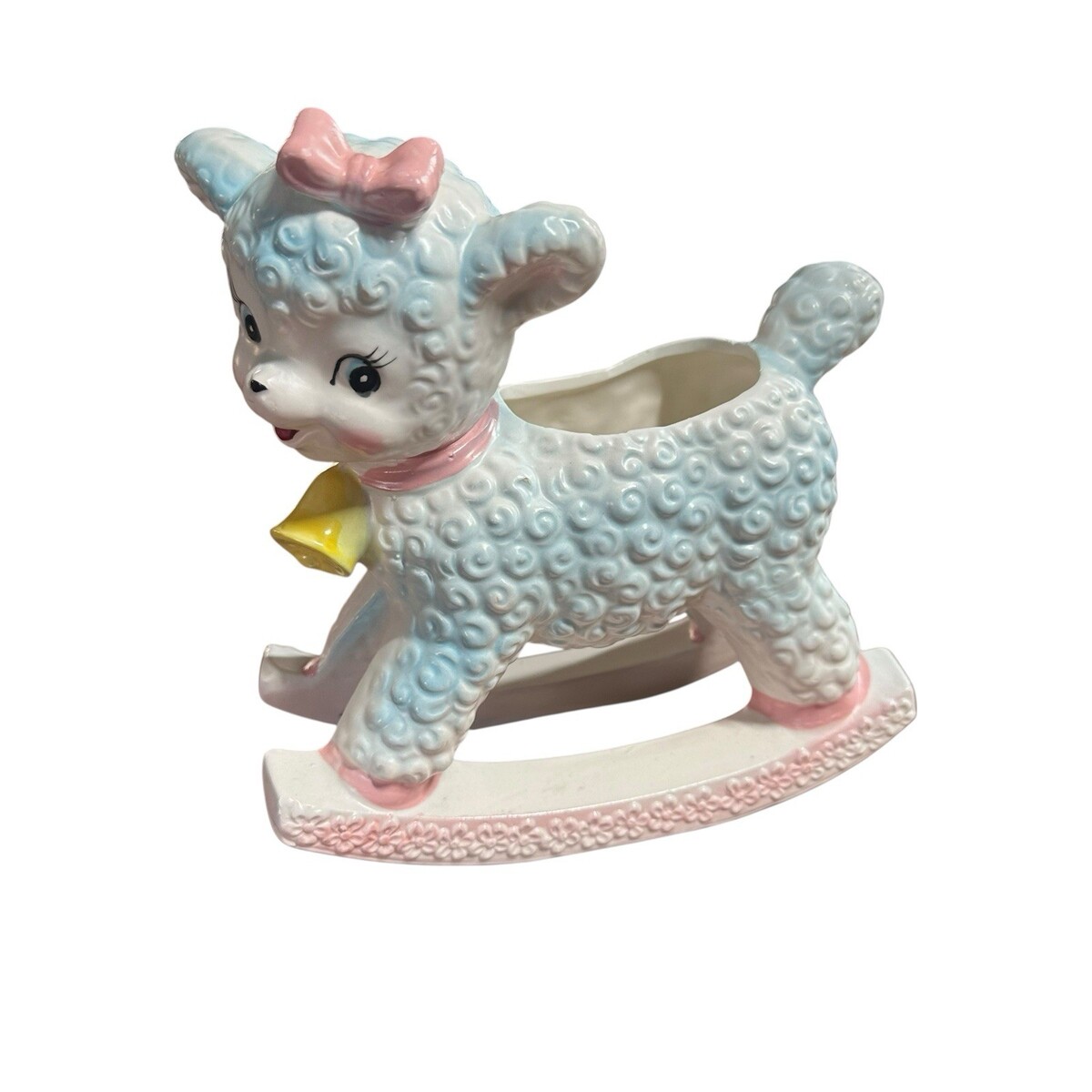 Vintage Inarco Baby Lamb Rocking Planter Pastel Nursery Decor 8" Japan 1960s