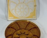 Primary image for Vintage Indiana Amber Round Divided Glass Deviled Egg/Relish Dish W/Original Box