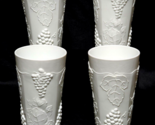 Beautiful set of 4 Indiana Glass Colony Harvest milk glass 5.75" coolers in near mint condition. No damage or wear on any of the glasses. Holds 16 ounces and is ideal for iced tea, soda or other favorite beverage.