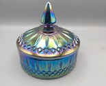 Vintage Indiana Glass Princess Blue Carnival Iridescent Candy Dish Bowl With Lid
