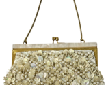 - Vintage Ivory Beaded Purse Hong Kong Mother of Pearl Handle Clasp Evening Bag