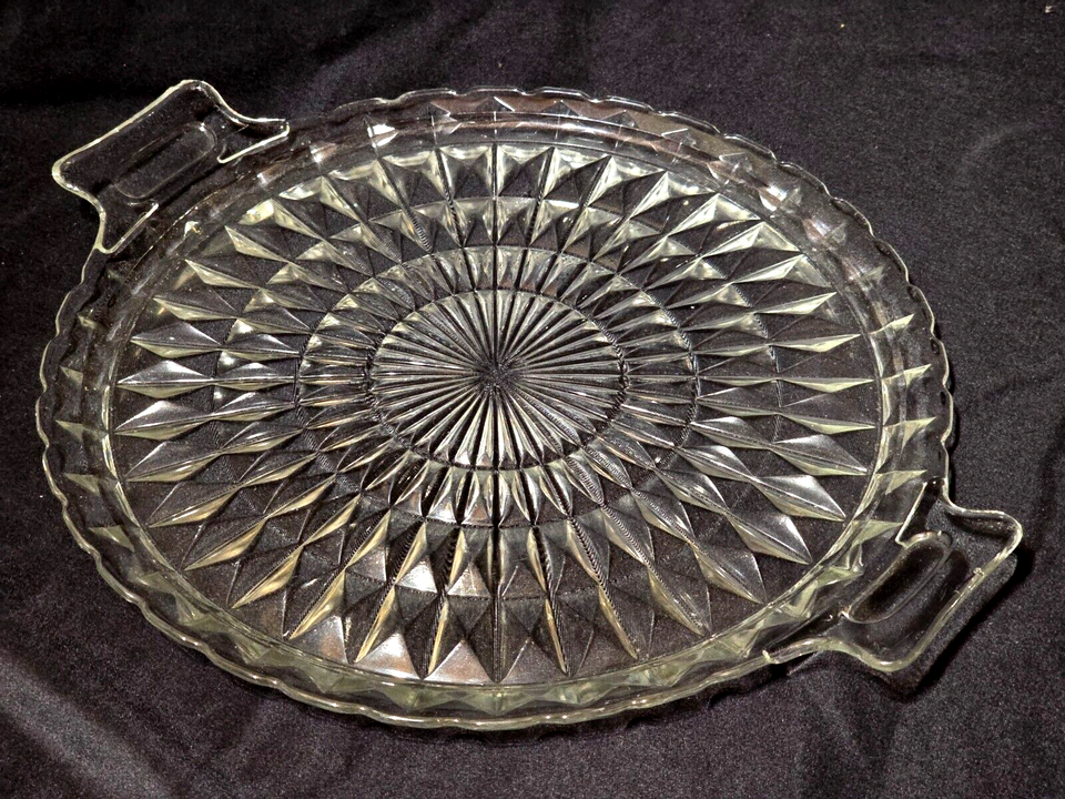 - Vintage JEANNETTE GLASS 11" Sandwich Cake Plate WINDSOR CLEAR - Circa 1936-1946