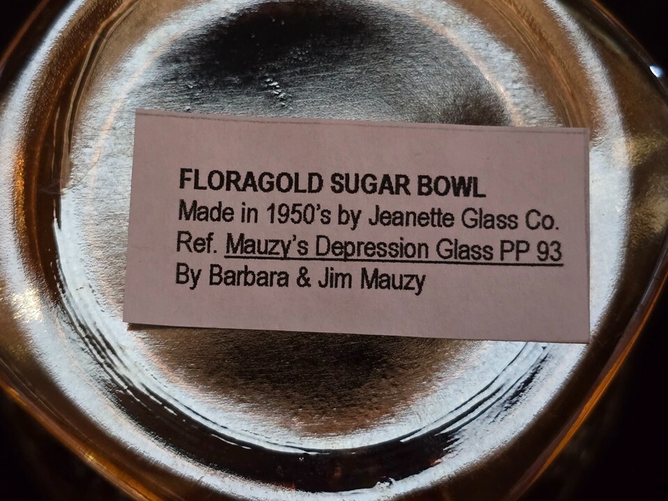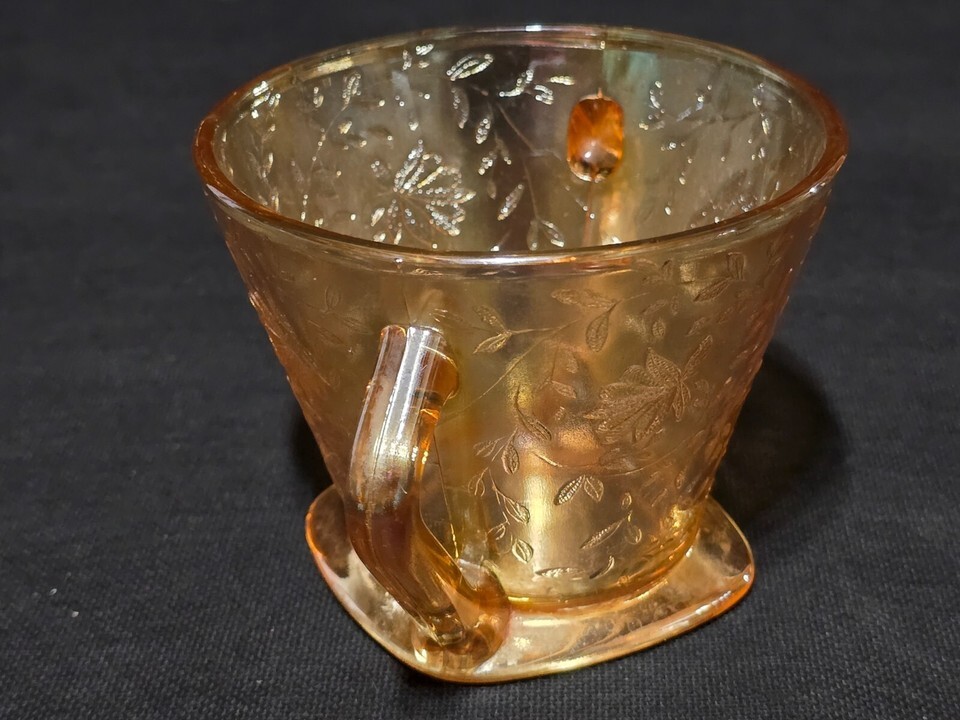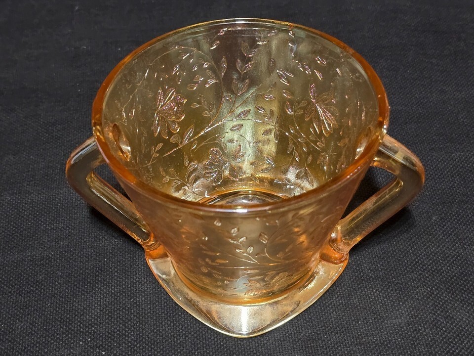 - Vintage JEANNETTE Open Sugar Bowl FLORAGOLD Marigold Carnival Glass 3.25" x 4"