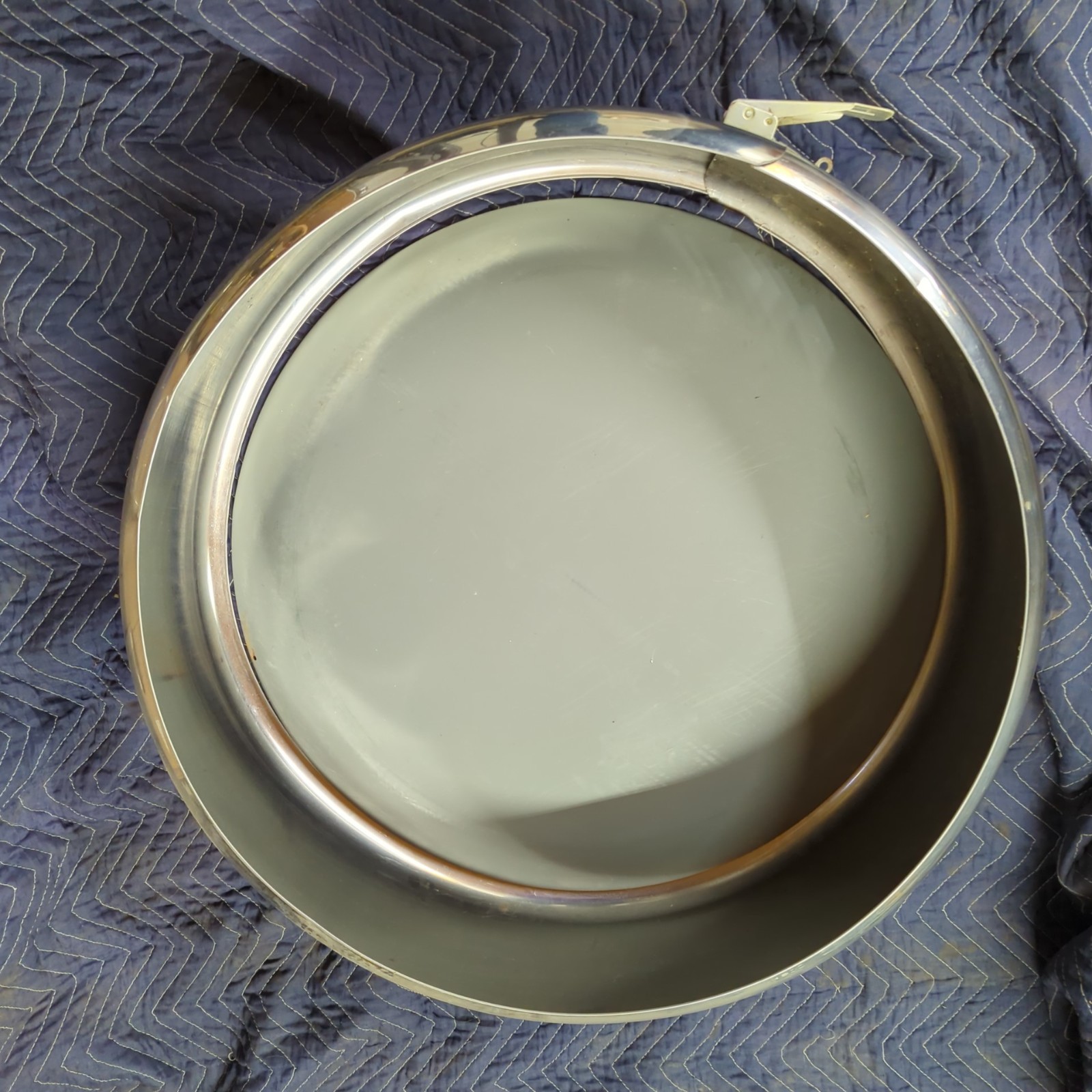 Exact item set is shown. This is being sold for parts / as is. Vintage new old stock kit, may include partial packaging. Ring has some small dents, as shown. Width approximately 7.5 inches. Stainless steel ring and primed steel cover plate. Ring adjusts from outer diameter of 26.5 to 29 inches. Plate diameter 26 inches. Set weight 11 lbs. Made in USA. Please review our business policies in our store for information regarding returns, shipping and warranties.