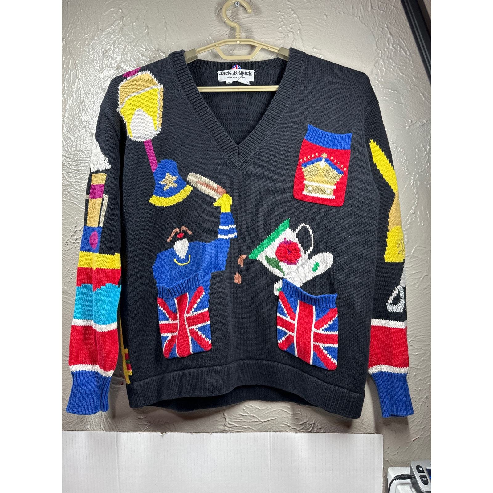 Vintage Jack B Quick Black London Sweater Flag Pocket V-Neck Mens Size MediumThis item has been cleaned pers used clothing policy.