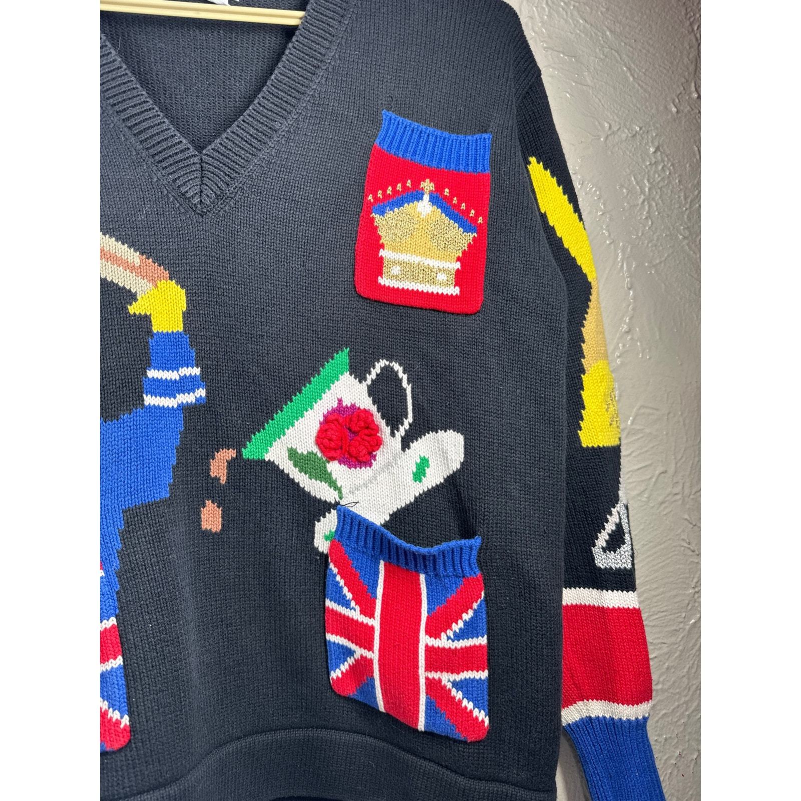 - Vintage Jack B Quick Black London Sweater Flag Pocket V-Neck Mens Size Medium