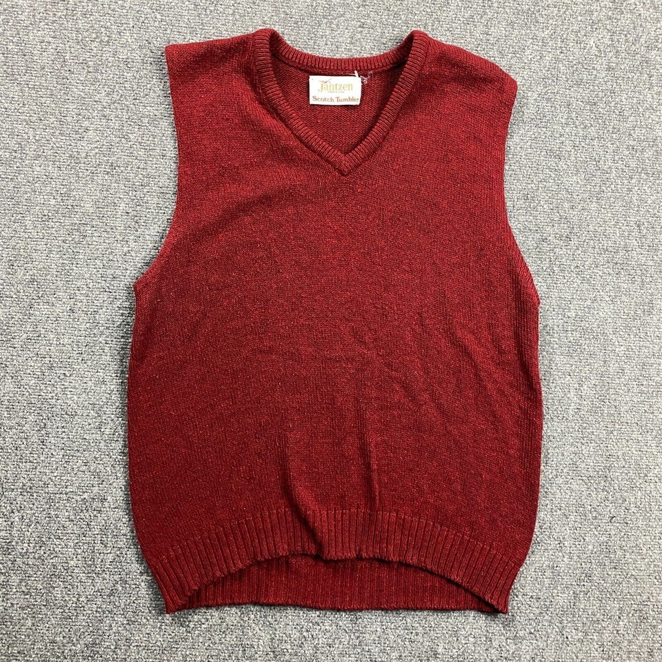 Vintage Jantzen Sweater Vest Mens Large Red V-Neck Scotch Tumbler Adults USA