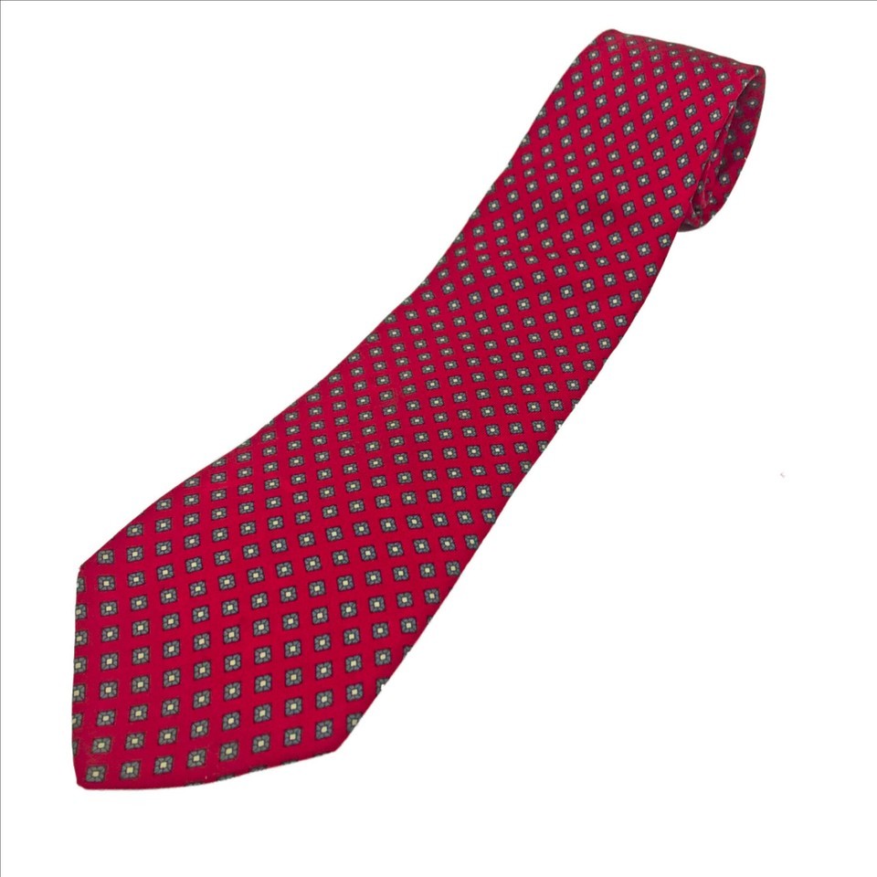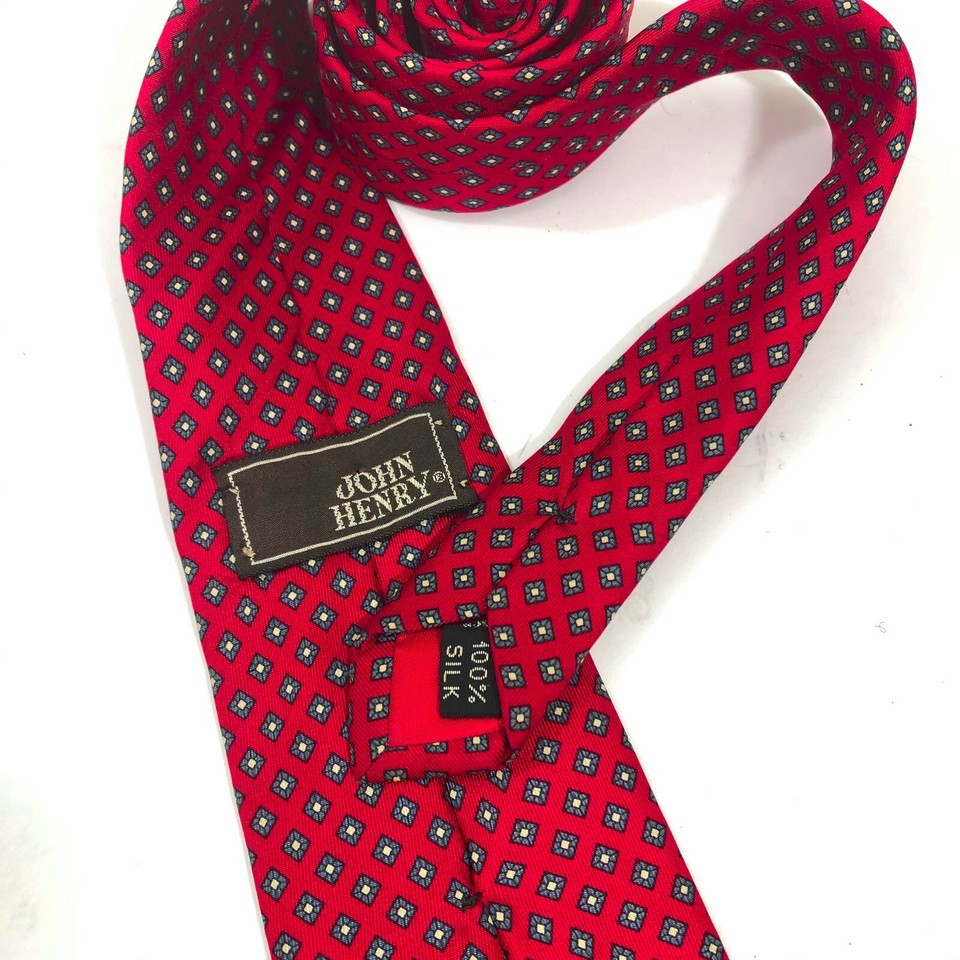 Make us an offer EUC, Excellent Used Condition 100% silk John Henry 60 inch tie Brand John Henry Made in Italy 60 inches long 3 inches wide at the tip Red with blue diamond dot pattern SKU J-3-0-0-004