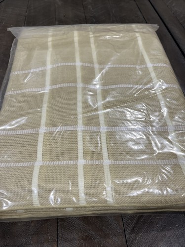 Vintage KEMP BEATLEY Tan Window Pane Tablecloth 60 X 88 Polyester Acrylic NOS.