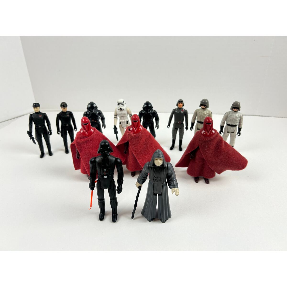 Vintage Kenner Star Wars Imperial collection of original 3.75-inch figures, player-grade and perfect for army building. Mix of 1977?1984 releases with several originals accessories included; expect paint rubs, cape wear, and general play wear across the lot?see all photos.