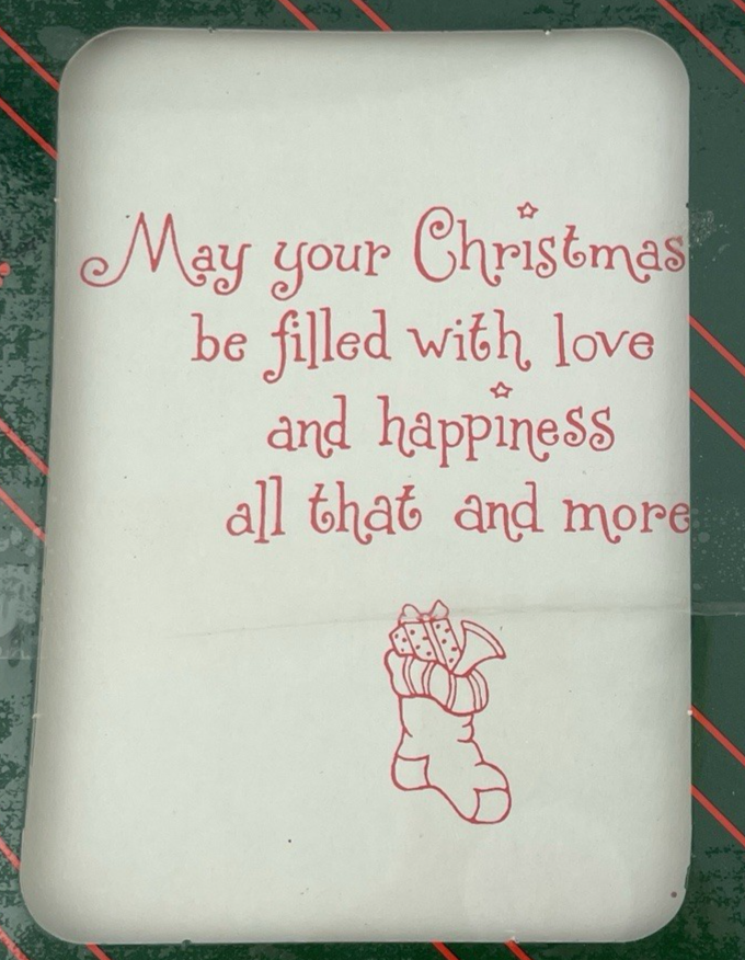 The product is a set of 18 vintage Kmart Christmas cards featuring a puppy dog, and kitten in a stockings, hangig on. a mantle. The cards are in green and red color and come with envelopes. They are multipurpose greeting cards with a contemporary Christmas theme. Made by English Cards LTD in the United States, these folded cards are perfect for sending warm wishes during the holiday season.