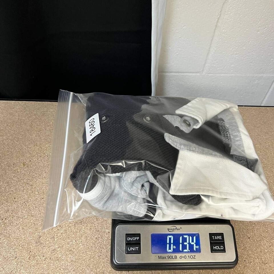 Please see photos for measurement. We will ship your orders via USPS Carrier with a tracking number for confirmation. for USED ITEM only - we "WASHED" all the clothes before posting. Please feel free to ask any questions. We answer most questions instantly! has a stain in the white part A18460