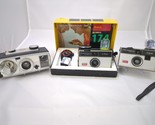 The Instamatic cameras come with original accessories and packaging, showcasing the charm of mid-20th century instant photography.