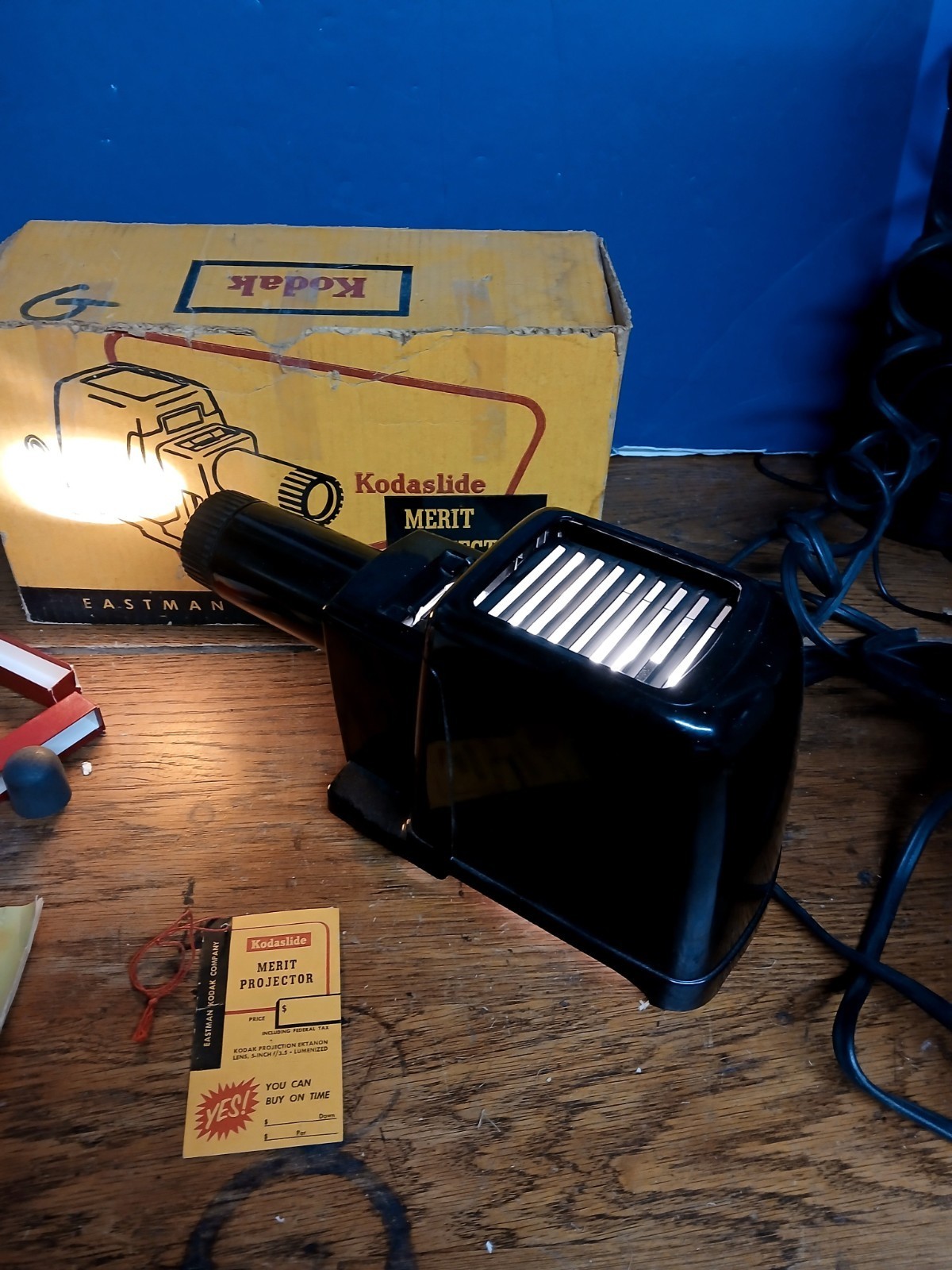 - Vintage Kodak Kodaslide Merit Projector Original Box With Manual Tested Works