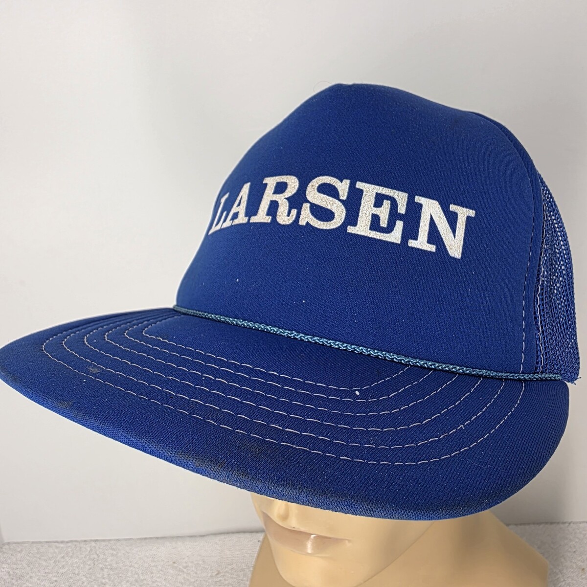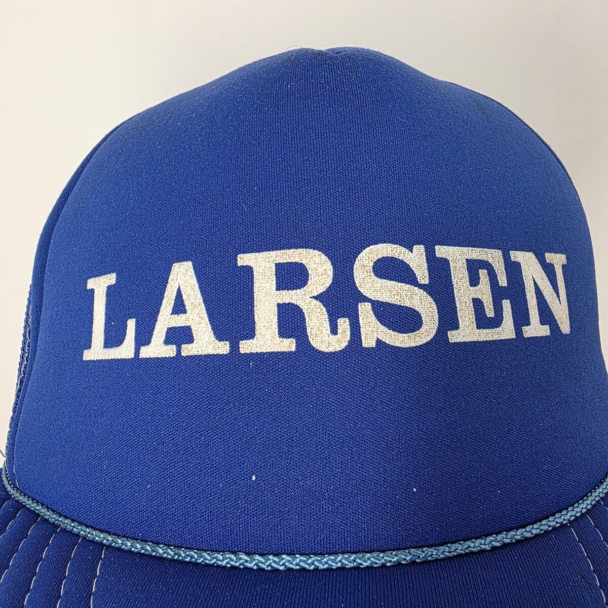 - Vintage LARSEN Blue Trucker Hat Snap Back Baseball Cap Rope