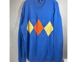 - Vintage Lands End Mens Argyle Sweater Orange Blue Yellow Round Neck Size XL