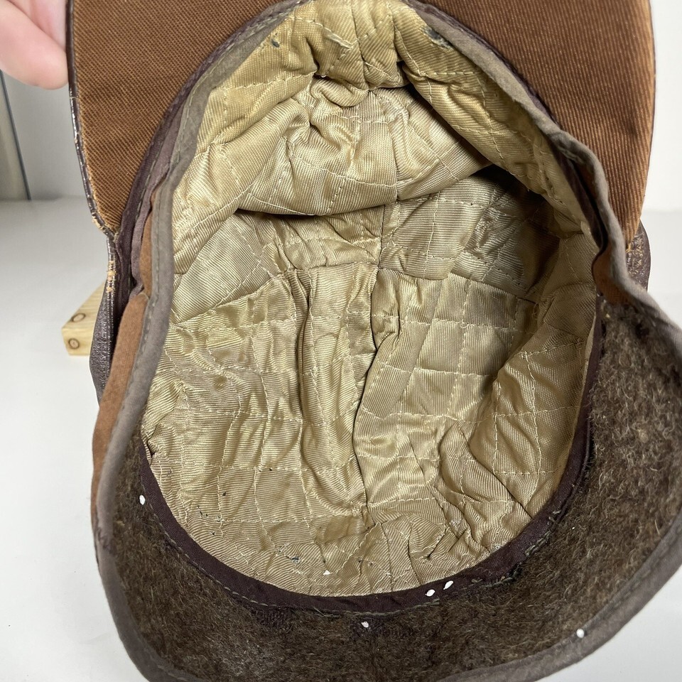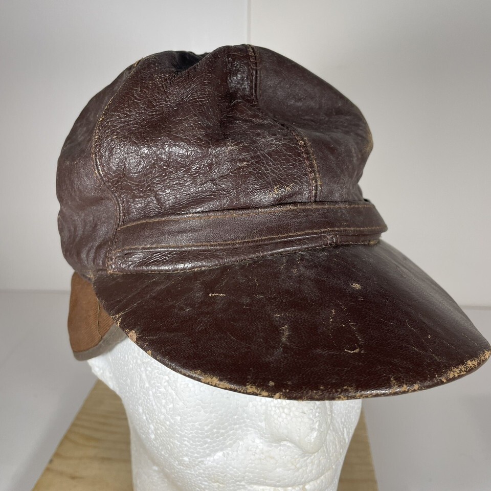 - Vintage Leather Hat 1940s Cap with Flaps WWII Maybe Small 6 5/8