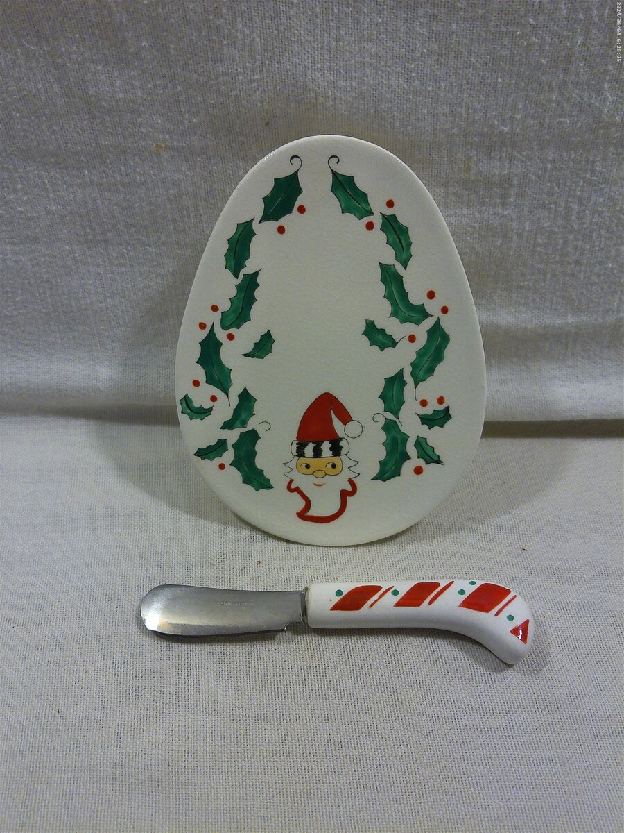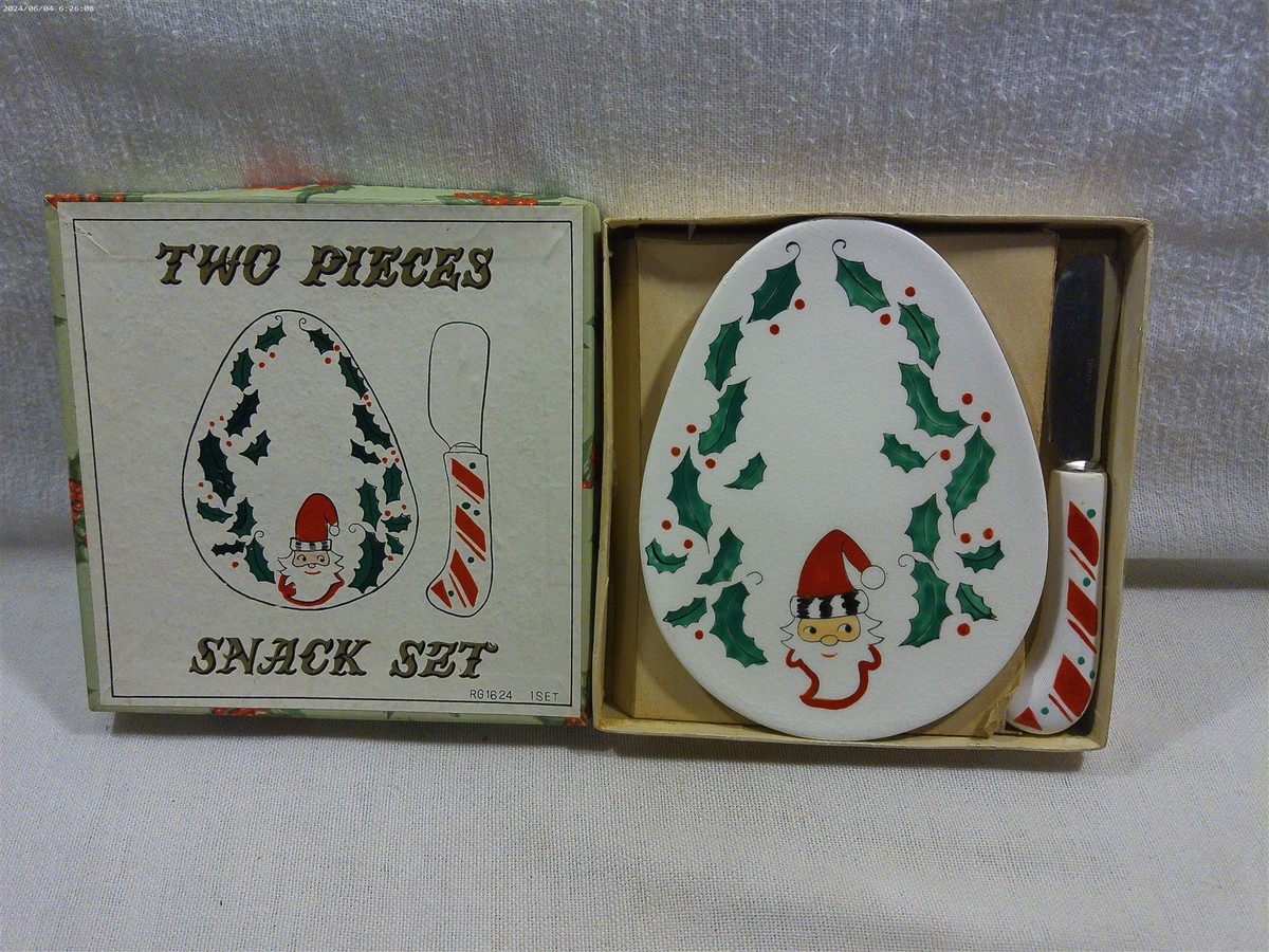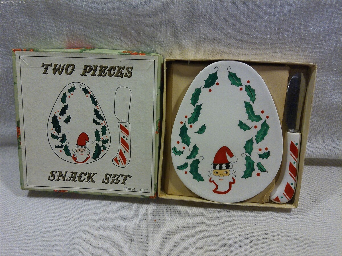 Vintage Lefton Japan Ceramic Christmas Santa Snack Set with Box Plate & Knife