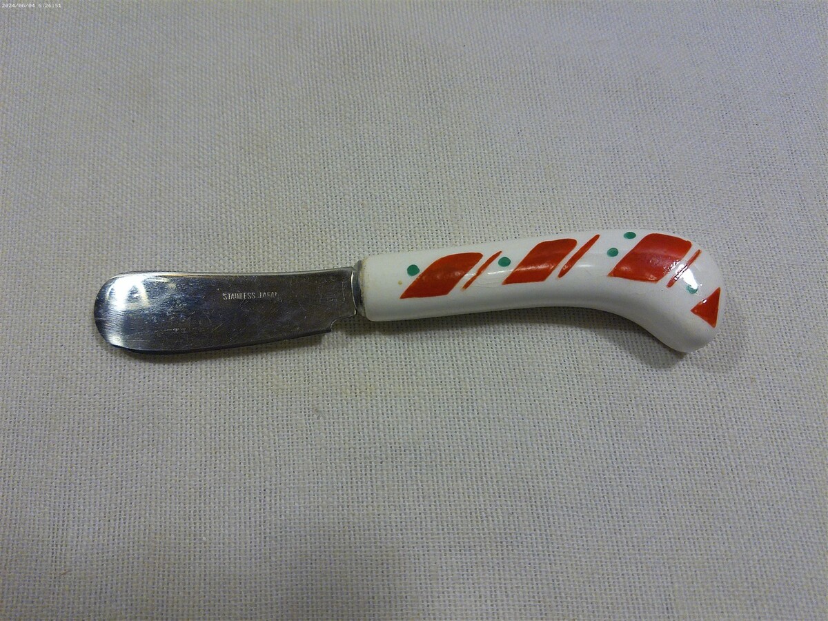 This is a vintage set of Lefton Japan Ceramic Christmas Santa Face Snack Set in Original box (RG1624). The set contains one snack plate featuring a Santa face with green holly leaves and red berries and a knife/spreader that looks like a candy cane. The original red and gold foil Lefton Japan label is attached to the bottom of the plate and marked 1624. The original box has great graphics of the Santa plate and knife and says Two Pieces Snack Set RG1624. The plate measures approximately 3/4" tall, 5 5/8" long and 4 1/4" wide - the knife measures approximately 5 1/4" long and 1" wide - the original box measures approximately 1" tall and 5 3/4" wide. Super clean cute Lefton Japan ceramic Christmas Santa face snack set in original box that displays absolutely great when sitting on a shelf or table! Powered by SixBit's eCommerce Solution