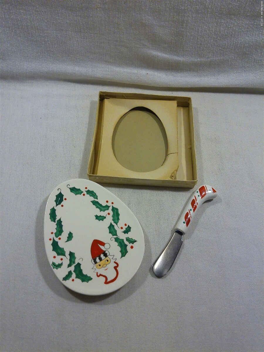 Primary image for Vintage Lefton Japan Ceramic Christmas Santa Snack Set with Box Plate & Knife