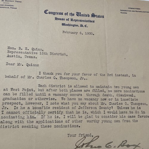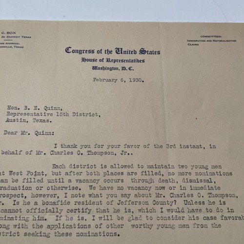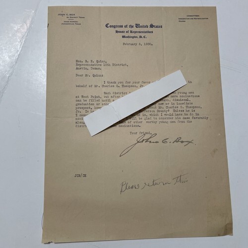 - Vintage Letter Congress of the United States 1930 John C Box 2nd District Texas