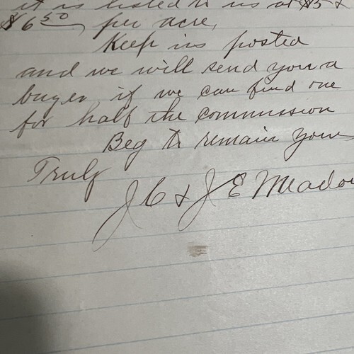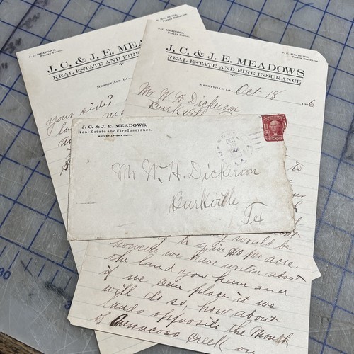 - Vintage Letter J.C. & J.E. Meadow’s Real Estate Merryville Louisiana 1905