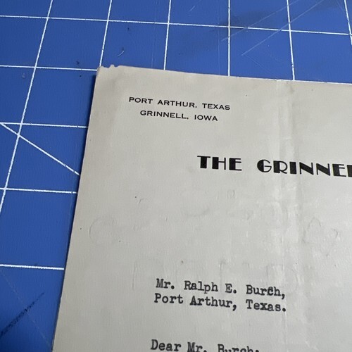 - Vintage Letter The Grinnel Texas Company 1956 Signed Herman Grethel Iowa