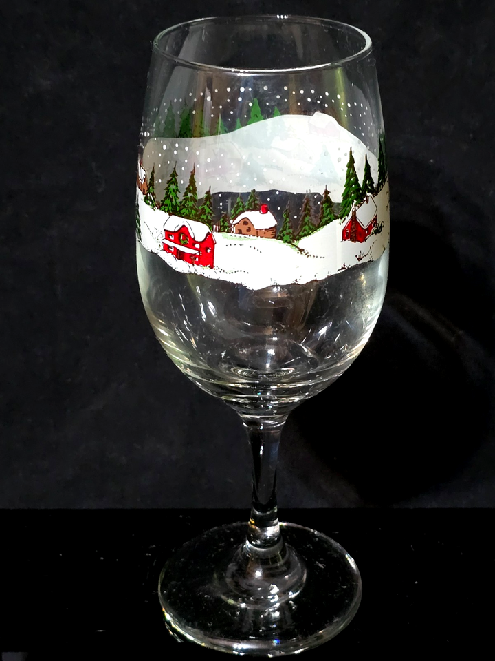 - Vintage LIBBEY 7.75" Wine Goblet WINTER VILLAGE Country Farm Scene - Set Of 4