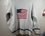 - Vintage Liberty Sweater Cotton Knit Heather Gray Patriotic Flag Made in USA Sz L