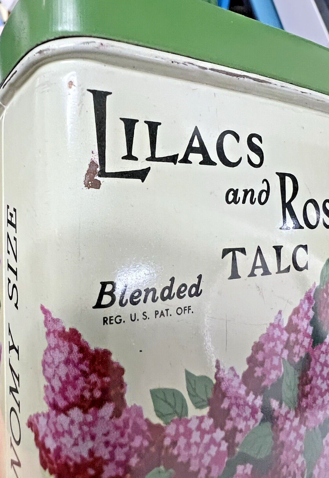 Primary image for Vintage Lilacs and Roses Talc Tin Lander 1 Pound FULL Great Shape