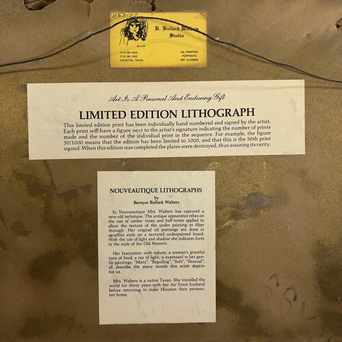 - Vintage Lithography Bernyce Bullock Walters Houston Texas Artist 1977 Signed